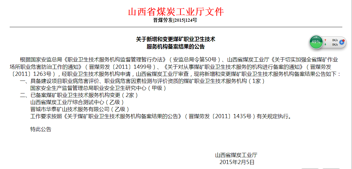 晉城國投華泰科技有限公司(以下簡稱華泰公司)是一家經營性國有企業,注冊資金1000.2萬元(由晉城市華泰礦山技術服務有限公司和晉城澤泰安全技術服務有限公司合并整合組建,國投全資)。公司持有山西省衛生健康委員會頒發的《職業衛生技術服務資質證書》、山西省應急管理局頒發的《安全評價機構資質證書》和山西省市場監督管理局頒發的《檢驗檢測機構資質認定證書》等資質,設施設備、能力、資質配套齊全。...【詳細信息】